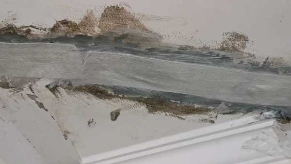 由于天花板开裂,原屋面防水层已经被破坏。由于天花板有裂缝,才会造成墙上的腻子发霉,起鼓,严重影响正常生活。