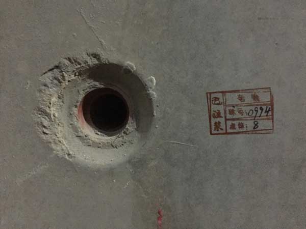 采用压力注浆法,灌注氯丁乳胶水泥混合浆液及改性环氧树 脂补强浆液,快速水泥砼外封闭处理。